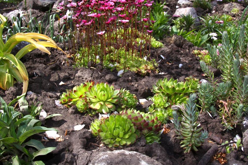 Si vous ajoutez à la composition des espèces d'oignons telles que le crocus, la tulipe, les crocus ordinaires et tardifs, les scillas, les crocus d'automne, le rocaille fleurira du début du printemps à la fin de l'automne.