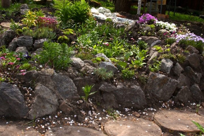 Dans un jardin de rocaille à plusieurs niveaux, les plantes sont plantées séquentiellement, niveau par niveau. Au sommet se trouvent les espèces les plus sensibles à la lumière et les plus résistantes à la sécheresse, par exemple la couverture végétale. Pour les terrasses glisse des plantes adaptées, faciles à transporter l'ombre, mais qui aiment le soleil. Au niveau moyen, humidité plus élevée. Au bas de la colline, on plante des cultures qui aiment l'humidité et l'ombre.