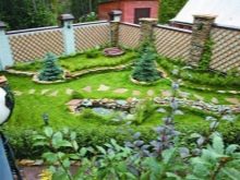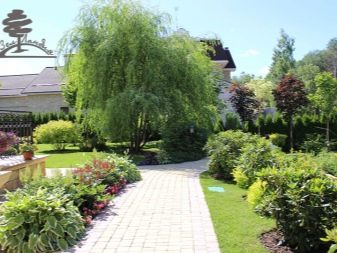 Le volume est attribué au site à l'aide d'arbustes luxuriants et de cimes d'arbres. Les éléments planaires sont généralement des plates-bandes et des pelouses.Vous devez également associer correctement la forme et la taille de tous les éléments de la conception du domaine.