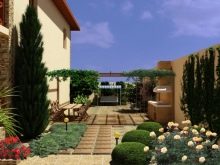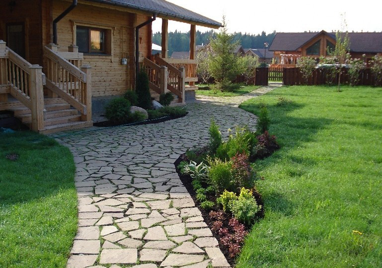 Vous devez penser à leur emplacement. chemins et chemins. Vous devez les organiser de manière à avoir accès à toutes les parties du domaine.. En outre, ils aideront à diviser la zone en zones. Après cela, vous devez prévoir une place pour une pelouse. Il est important de lui attribuer un vaste domaine, car cet élément occupe généralement beaucoup de place.