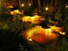 Un autre élément décoratif important est un bon éclairage. Bien que le rétro-éclairage dans le jardin soit assez difficile, cela en vaut la peine. Tous les chemins, gazebos et réservoirs artificiels illuminés ont fière allure, remplissant votre jardin de magie et vous plongeant dans un conte de fées. Il peut s'agir de lampadaires, ainsi que de mini-lampes.