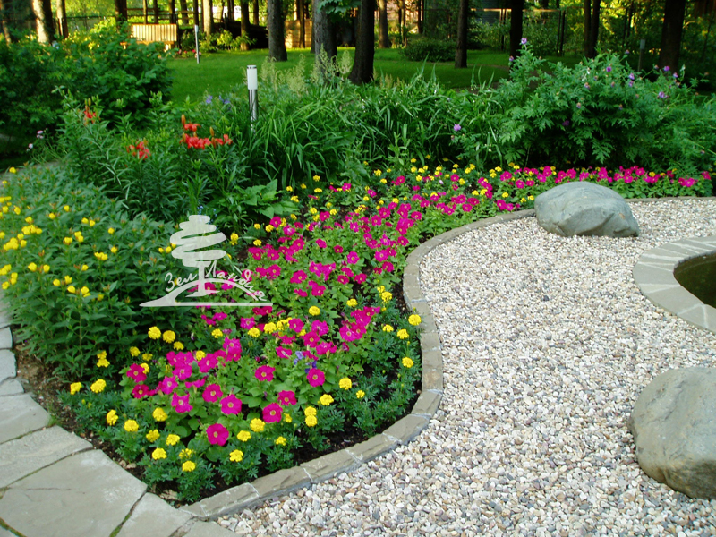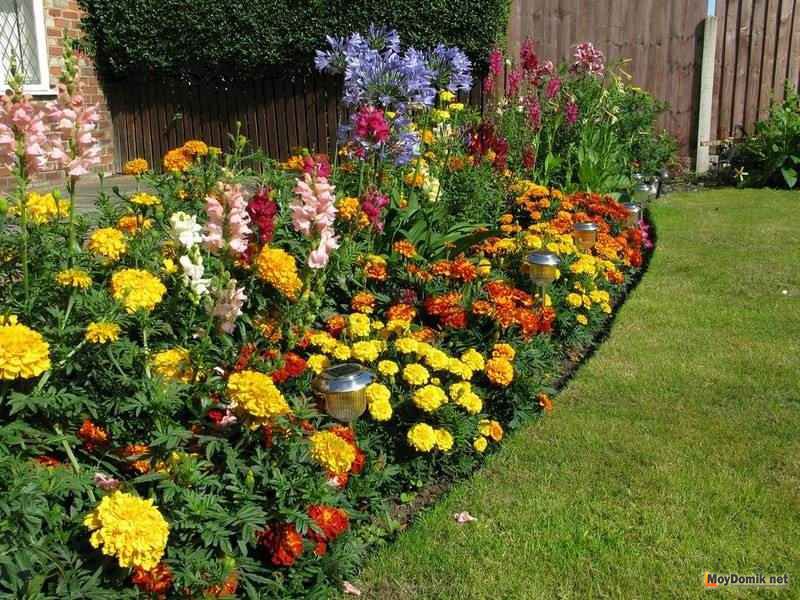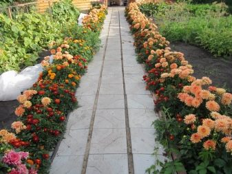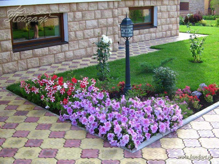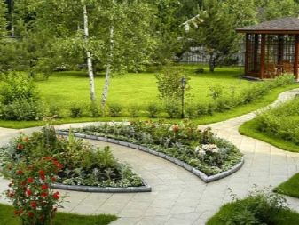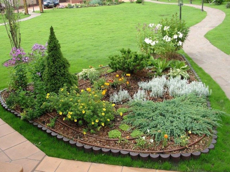 Ainsi, les bords de la bordure peuvent être décorés avec des fleurs, mais un peu à l’écart, mais près de la première rangée de plantes, vous devez planter des fleurs de différentes nuances et formes. Ainsi, vous pouvez créer un design spectaculaire et mettre en valeur les magnifiques pistes du site.