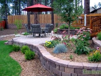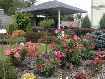 Une autre caractéristique est la nécessité de créer une composition unifiée et logique sur le site. Il convient donc de combiner architecture et plantes, ainsi que textures, formes et couleurs. La combinaison devrait être brillante, mais harmonieuse.