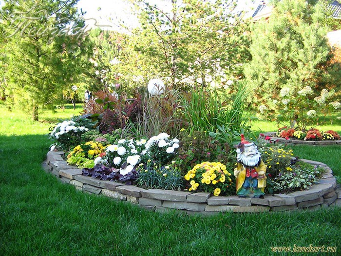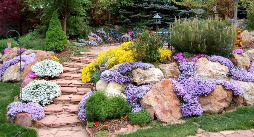 Lorsque vous créez un paysage, faites plus attention aux combinaisons de couleurs. Donc toutes les fleurs et autres plantes, ainsi que les éléments décoratifs doivent être en harmonie les uns avec les autressinon l'intrigue sera trop colorée et sans goût. Il est important de choisir quelques couleurs primaires et de ne les diluer qu'avec un mélange de couleurs approprié.