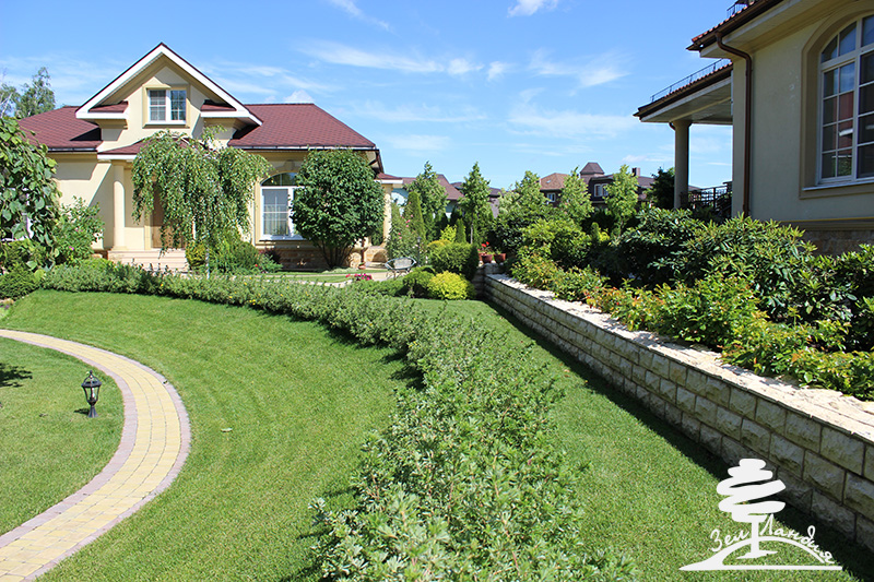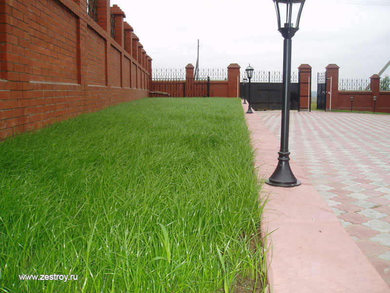 La pelouse est un élément de liaison entre les différentes parties de l'aménagement paysager. Vous pouvez acheter de l'herbe à gazon sous forme de graines ou de petits pains. Il est très important de conserver une apparence soignée de telles plantations.