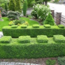 - Le buis est un chef de file parmi les arbustes utilisés dans la conception des chalets d'été. Il a un feuillage magnifique qui plaît à l'œil toute l'année. Cette plante est utilisée par presque tous les jardiniers et les concepteurs.