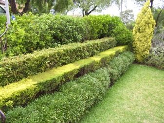 Une combinaison de végétation de couleur contrastante fera bonne impression dans les haies de plusieurs niveaux. Vous pouvez combiner des arbres à feuilles caduques et conifères. Pour donner du naturel à votre clôture, vous pouvez planter des arbres dans une rangée. Ils devraient être situés sur le deuxième ou troisième niveau.