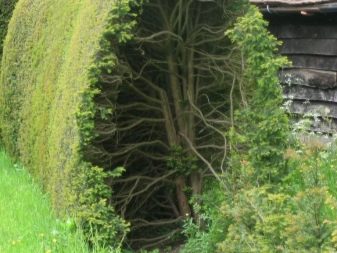 La zone supérieure représente la croissance la plus rapide. Il y a donc une violation des lignes dans cette partie, malgré l’état normal des côtés. Si vous n’avez pas l’opportunité de tailler constamment une haie, vous vous adapterez à la forme dans laquelle se trouve une pointe arrondie ou triangulaire.