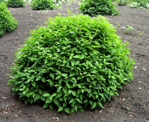 Ces buissons ont une taille compacte et une forme sphérique. L'emplacement optimal pour l'emplacement de telles plantes - le long des pistes et du périmètre du site. Le chèvrefeuille pousse seul sans taille. Pour couper, il faudrait recourir à la septième année de la vie de la végétation, lorsque les buissons deviennent trop épais. Une fois tous les trois ans, une culture de taille rajeunissante devrait être effectuée par éclaircie.