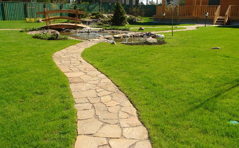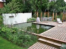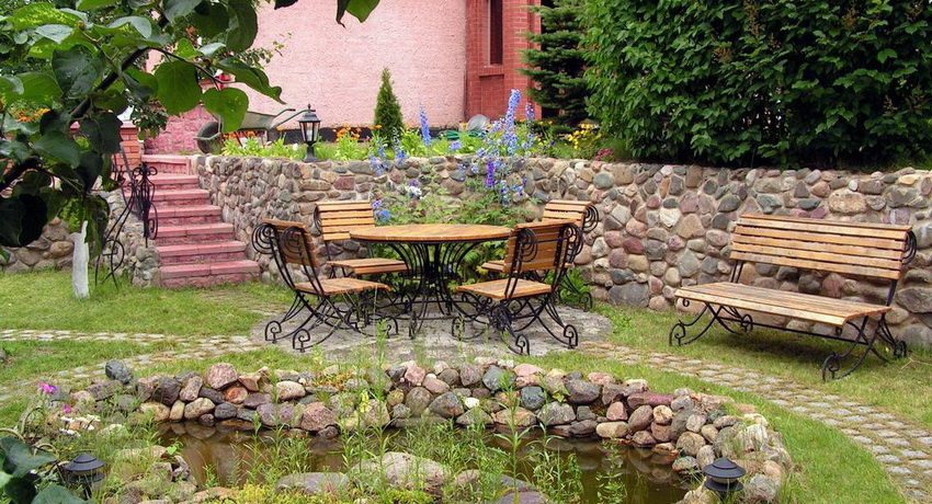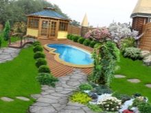 Vous pouvez relier les zones spatiales pour le repos dans une petite zone à l'aide de pistes. Mais pour se débarrasser d'un contour trop net, il n'y a pas de meilleur moyen que de disposer un étang dont les bords ressemblent à des vagues gelées.Il y a d'autres astuces de paysage; ainsi, les pelouses, où ils vont se reposer, il est souhaitable de mettre sur des pelouses carrées et rectangulaires (bien que toute autre géométrie correcte convienne).