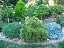 Les conifères, eux aussi, ne devraient pas choisir aveuglément; si votre objectif est de créer une ou plusieurs compositions d'apparence naturelle, privilégiez les genévriers sans prétention.Lorsque vous devez choisir une plante à la fois jolie et isolée, appartenant à un groupe rapproché et tolérant même parfaitement les conditions d’une grande ville, elle est presque toujours préférable à Tui. Le mélèze devrait être utilisé si votre jardin a un sol caillouteux; la plantation en groupe de ces arbres ne semble pas moins attrayante que l'individu.