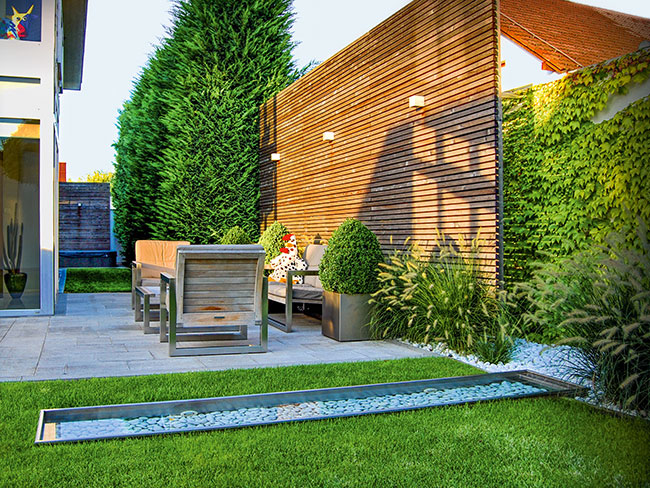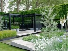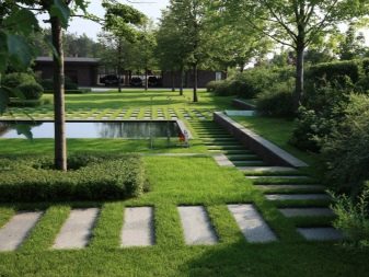 Une autre tendance actuelle est la reproduction de motifs architecturaux dans la conception de paysages. De moins en moins souvent, il existe des tracés avec des chemins qui ne mènent pas dans une direction strictement définie, simplement pour la beauté. Même les éléments décoratifs doivent être choisis aussi fonctionnels que possible pour justifier leur utilisation.