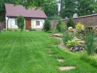 La pelouse, sur laquelle il faut marcher, il est souhaitable de soulever l'espace environnant et ses bords sont renforcés à l'aide de structures en bois ou en acier. Le territoire avant de creuser - ne soyez pas paresseux pour enlever manuellement chaque racine, chaque germe et chaque mauvaise herbe, et même les plantes cultivées de valeur.