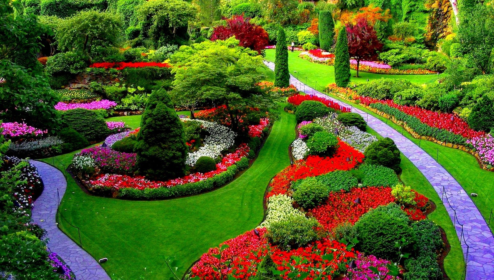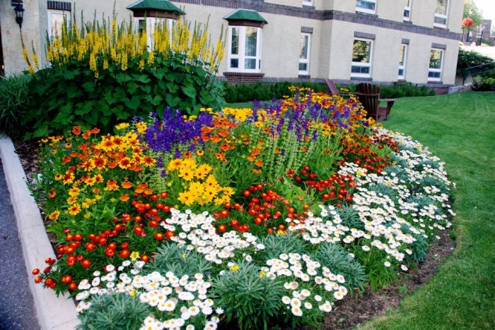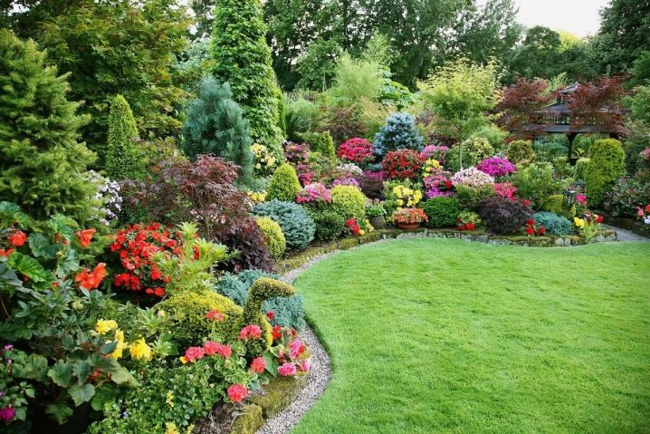 Il n’est pas nécessaire d’introduire dans le jeu de nombreux tons différents - fleurs rouges, vertes et blanches, divisés en groupes, entourés d’une pelouse verte et ceints d’un chemin lilas, ont également l’air attrayants.
