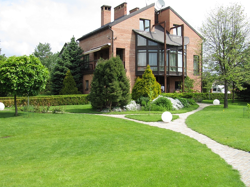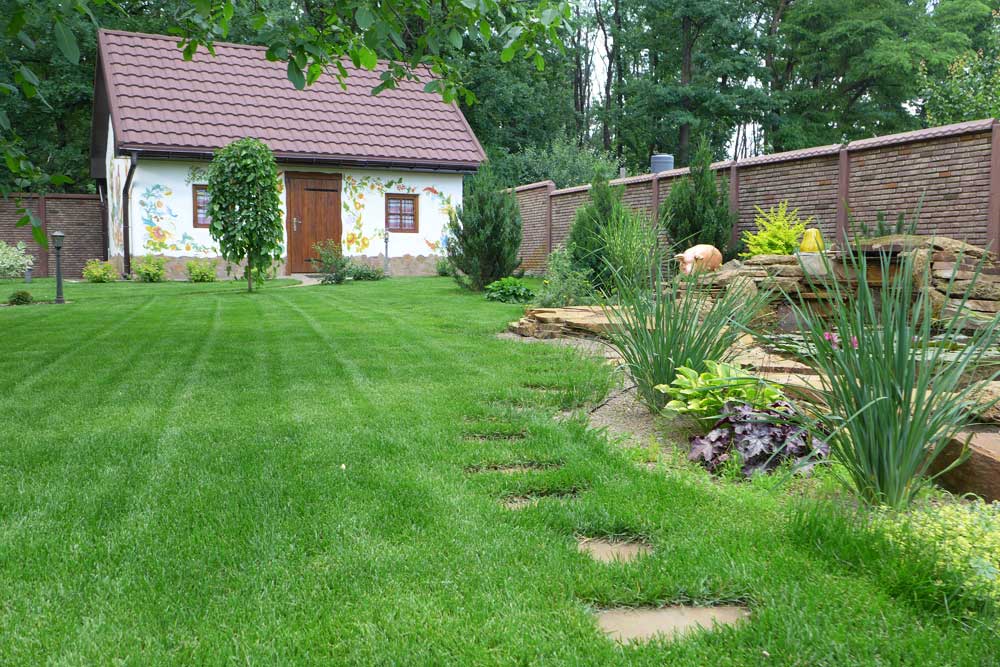 Toutes les parties du régime foncier qui ne sont pas occupées par le jardin, le jardin, la maison, etc., sont semées avec de l'herbe à gazon.