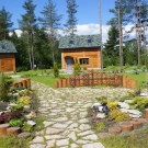 - Style de parc à la française avec Chalet. Ce style plaira à beaucoup de gens. L'idée principale ici est l'harmonie et le confort. La popularité du style gagne du terrain. Il promeut le concept de connexion avec la nature et d'obéissance inconditionnelle à ses lois. Lors de la création de ce style, vous ne pouvez utiliser que des matériaux naturels en harmonie avec le terrain. La présence d'éléments artificiels au minimum. Ce style est facile à maintenir. Vous réussirez à garder votre budget familial. D'accord, ce n'est pas sans importance.