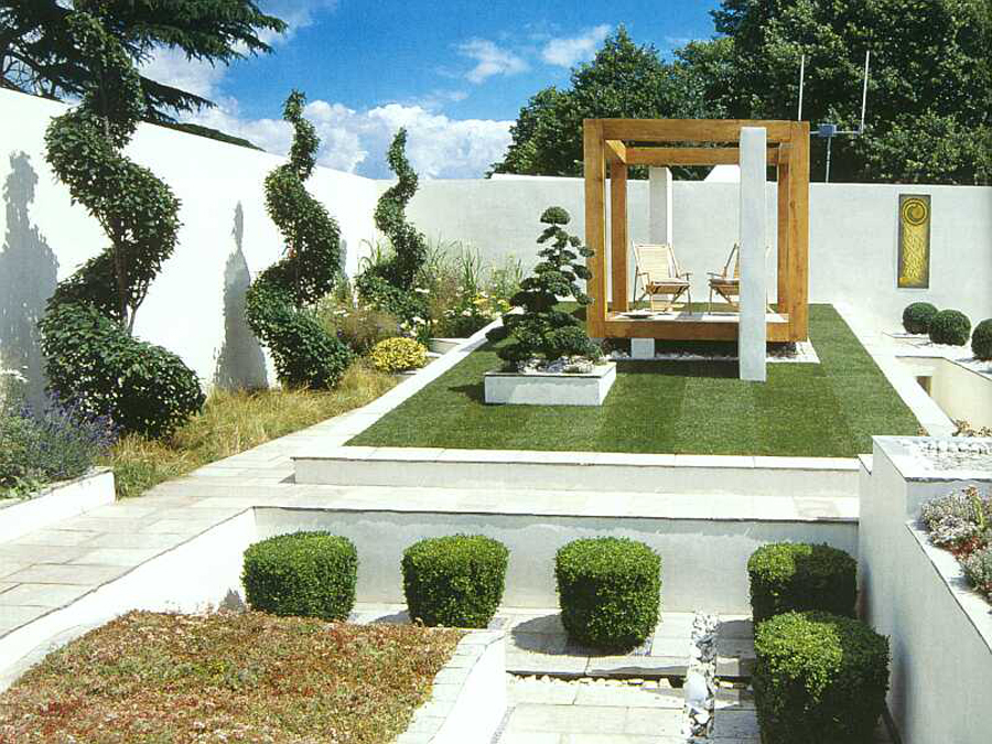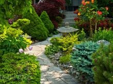 Vous pouvez relier toutes ces zones à l'aide de chemins et les séparer avec différents arbres, arbustes ou sculptures de jardins spéciaux. Les concepteurs ont proposé une belle phrase: une haie. Vous pouvez le poser sur votre site. Ce sera très beau, et surtout, fonctionnel.