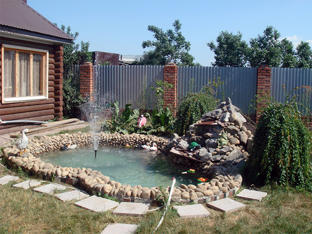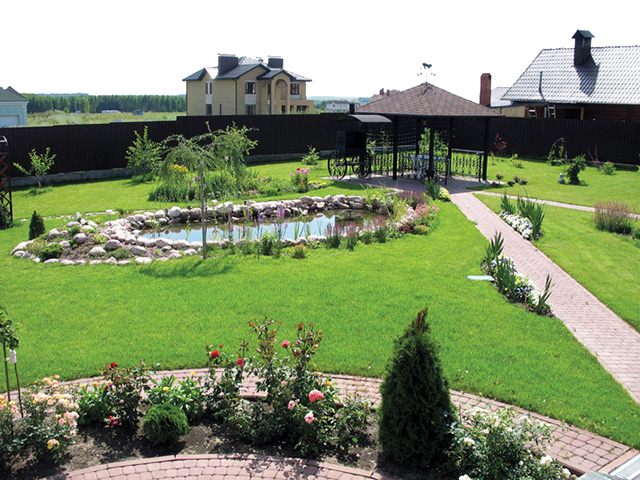 - Zone de l'eau. Pour une grande parcelle de terrain, il serait préférable d’inclure cette zone dans la conception en tant qu’élément distinct. Cela est dû au fait que les travaux d'aménagement des réservoirs nécessitent des connaissances et des compétences. La structure comprend des réservoirs artificiels et d'autres solutions de conception.