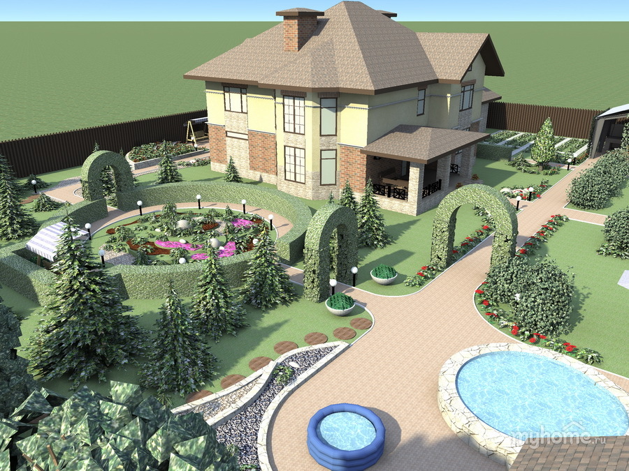 Pour commencer, commencez à concevoir un projet de conception. Considérez toutes les zones et le style. Guidé par ce projet, vous planifierez le processus de construction et d'aménagement paysager. Si vous avez des doutes sur votre capacité à faire face aux tâches, il est préférable de faire appel à des professionnels.