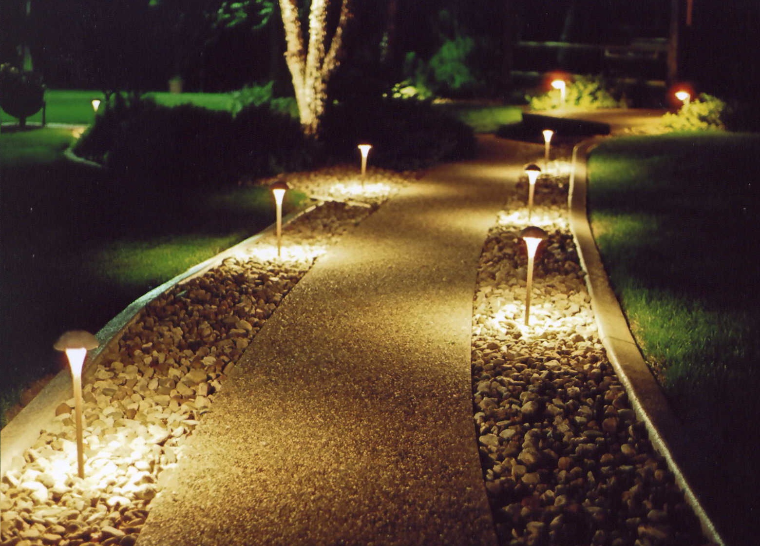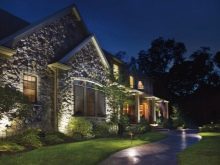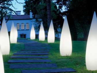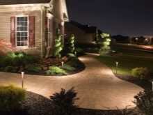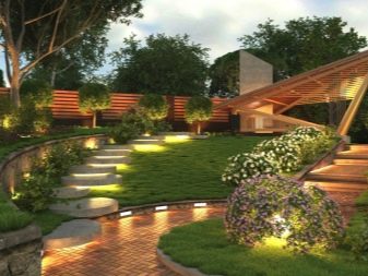 Une attention particulière devrait être accordée à l'éclairage de l'allée principale menant à la maison, à l'allée principale du territoire, aux aires de repos des propriétaires et aux escaliers. Souvent, des structures lumineuses sont également utilisées pour compléter la conception du paysage (installations lumineuses vacillantes pour réservoirs, mécanismes de mise en évidence des couleurs, lampes montées sur les murs extérieurs d'une maison ou d'un garage).