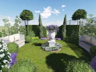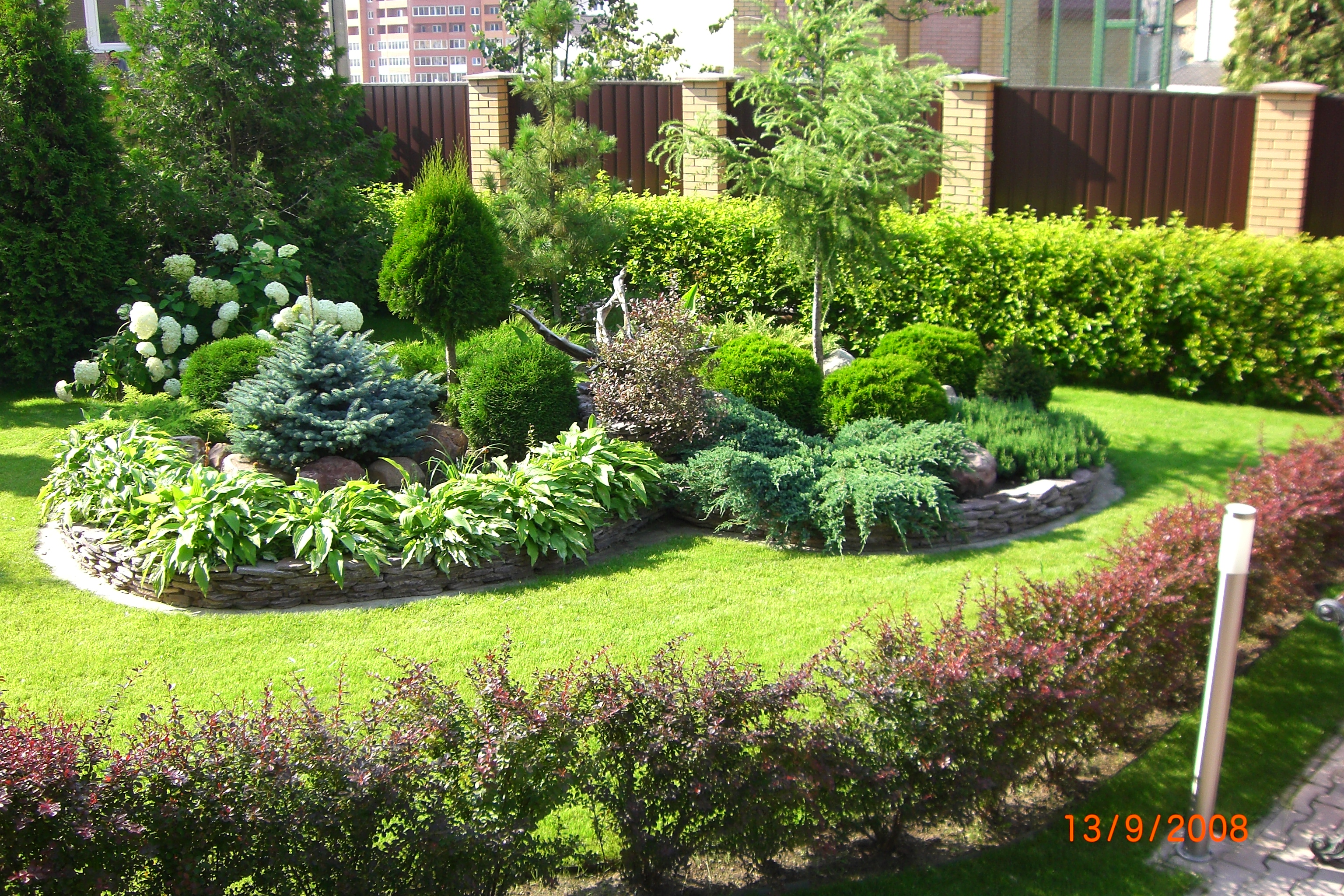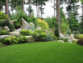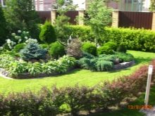 Un terrain impressionnant vous permettra d'y placer de nombreux arbustes et arbres d'ornement (thuya, genévrier, hortensia, viorne). Aujourd'hui, les concepteurs combinent souvent dans le projet d'un paysage unique une plantation naine ou trop petite (environ 1,5 m) et haute (pas plus de 6 m). De telles combinaisons conviendront parfaitement sur des sites spacieux.