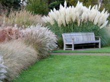 Un autre attribut important des grands jardins est l'herbe ornementale. Elle sera en mesure de donner à votre chalet d’été un aspect attrayant et discret. Les types de telles plantes comprennent prairie, tonkonog, fétuque.
