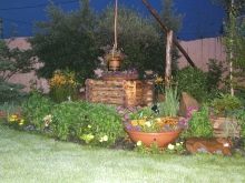 Un autre élément nécessaire est l'eau. Pour les zones de grande taille, des fontaines décoratives originales peuvent convenir, ce qui ravirait les propriétaires du jardin avec leur beauté et leur originalité. De plus, souvent dans des banlieues d’une taille impressionnante, on peut voir des étangs artificiels, bordés de grosses pierres, de végétation ou de petites lanternes lumineuses.