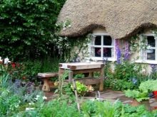 La parcelle, conçue dans cette direction, ne nécessitera pas de gros investissements monétaires ni un entretien complexe. Lors de la création d'un design dans un style rural, il est important de se rappeler que les chemins, les lampes et de nombreux autres éléments constitutifs d'un jardin doivent être facilement dispersés et négligents. La conception de ce type de paysage se caractérise également par la présence de plusieurs grands parterres de fleurs, dont l’un est le principal.
