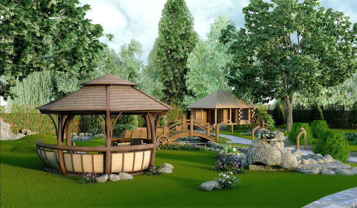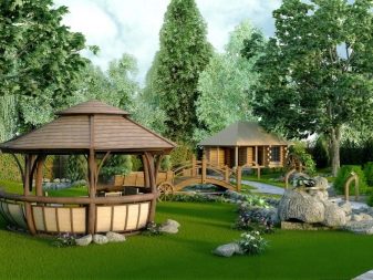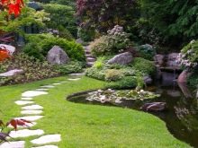 Ce style est parfait pour ceux qui veulent créer une atmosphère orientale inhabituelle sur leur parcelle.Lors de l’arrangement de cette conception, on utilise le plus souvent des rochers et divers types de pierres décoratives. L'une des principales caractéristiques de ce type de conception de site est un petit réservoir artificiel.
