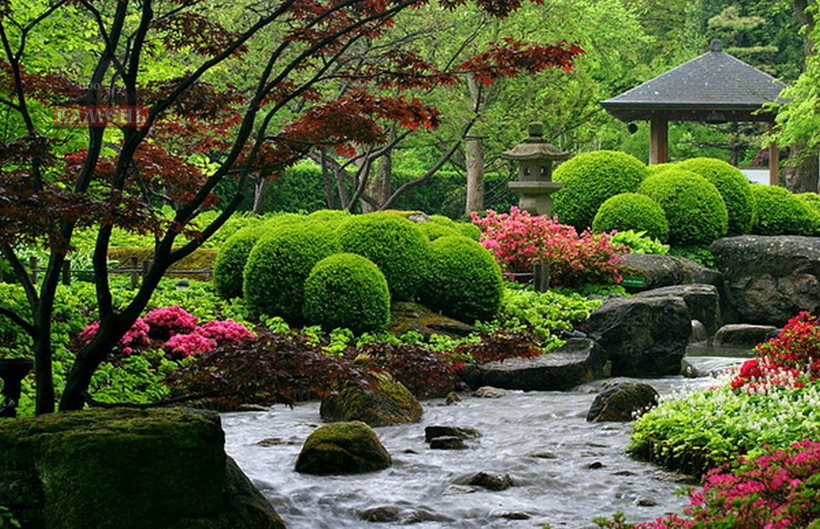 Ce style se distingue par un grand nombre de structures et de bâtiments différents. Souvent, dans les jardins de ce type, construisent des arches, des ponts, des plates-formes spéciales et des habitations supplémentaires pour le reste de la maison. Pour créer de tels bâtiments en utilisant toutes sortes de pierres, cailloux, bois et parfois de verre.