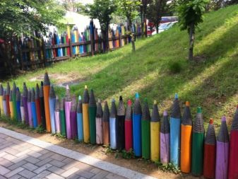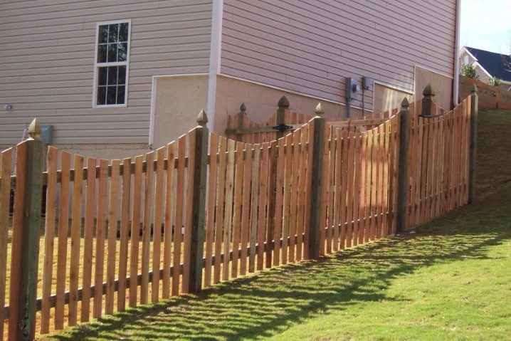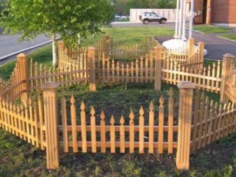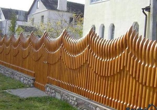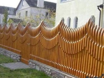 Des éléments décoratifs peuvent être placés sur les parties supérieures des clôtures et à partir du bas. Les sommets, montés à différentes hauteurs selon le type de vagues ou de demi-cercles, permettent de créer une clôture légèrement arrondie. Une telle marche permet de corriger la hauteur insuffisante des sections si on augmente le tissu à la fois par le haut et par le bas.