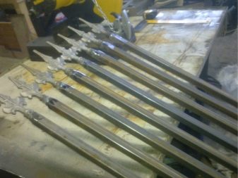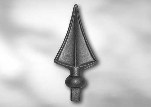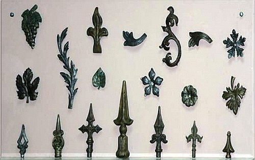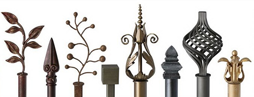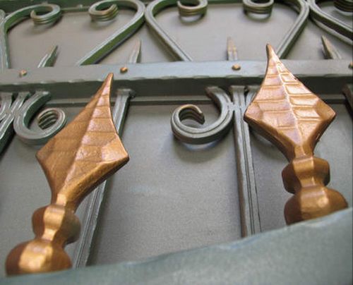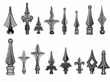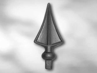 Les pics ne conviennent que sur les clôtures forgées. Grande variété de formes externes, mais pétales métalliques aplaties les plus couramment utilisés. Les cônes à trois ou quatre faces sont largement utilisés.imitations de lance ou de pointe de flèche. Vous pouvez faire ces imitations à la fois texturées et plates.