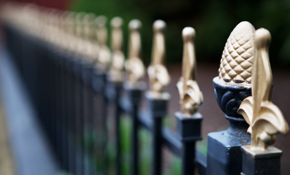 Les sommets en fonte sont au départ plus décoratifs que protecteurs. Les éléments en acier de la clôture sont facilement fixés aux bases en acier et suffisamment affûtés pour bloquer de manière fiable l’invasion de personnes non autorisées.