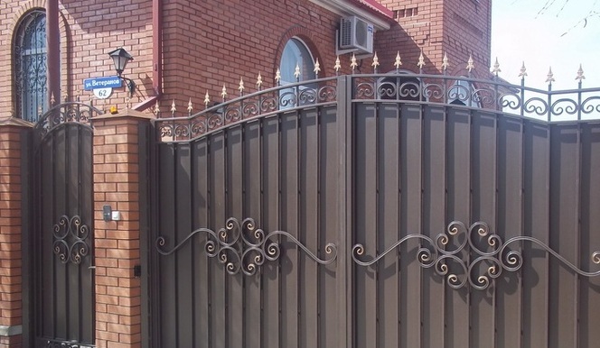 En plus de forger, bien se manifester et des ornements du profil. Pour les obtenir, la tôle d'acier est découpée en pointes de forme pointue et ces blocs sont placés au-dessus de la clôture. Bien que cette solution ait commencé à être appliquée il y a quelque temps à peine, son installation est facile, vous pouvez même effectuer tout le travail de vos propres mains.