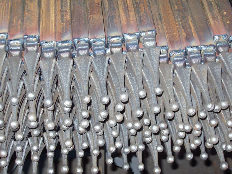 Les pics sont toujours fixés par soudage, il est préférable d’utiliser des pièces de section unique et de les façonner avec des tiges métalliques.