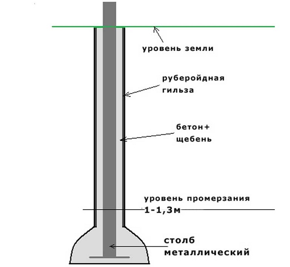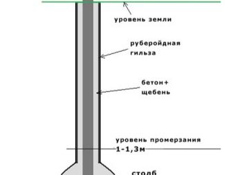 - La profondeur d'instillation des supports doit dépasser la profondeur de gel du sol. Habituellement, cette valeur est comprise entre 100 et 150 cm. Vous devez donc creuser des piles plus profondes.