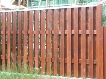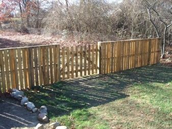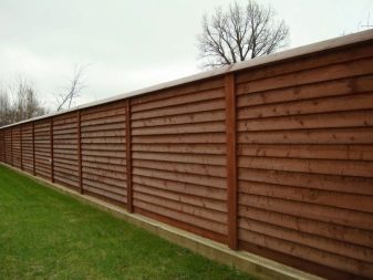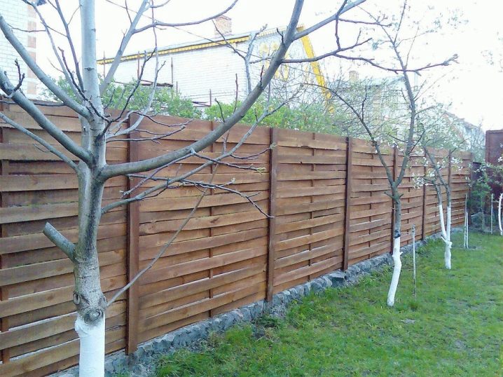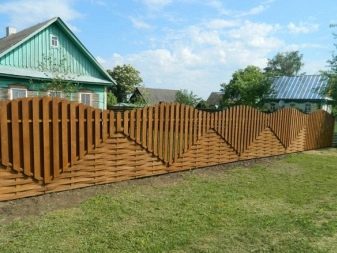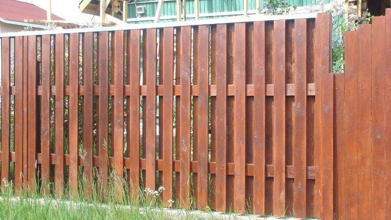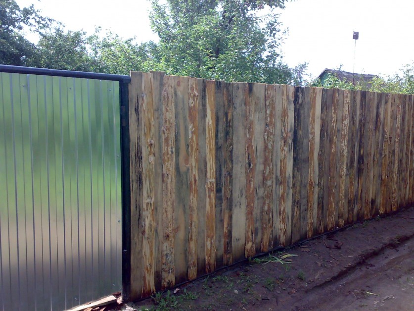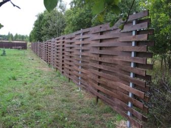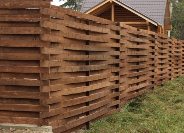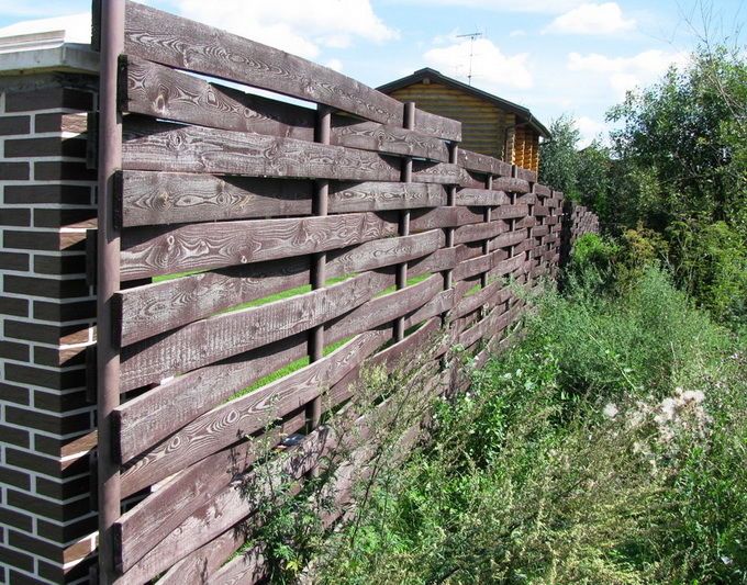 L'option des planches peut varier en hauteur. Habituellement, une telle clôture est verticale et sourde, Cependant, il peut être horizontal. Il est extrêmement important que les planches se chevauchent un peu (2 cm), car au fil du temps, le matériau se brise et que la confidentialité est préservée.il est nécessaire que la clôture recouvre encore complètement le site.