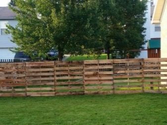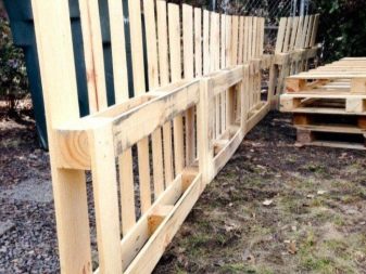 La construction à partir de palettes est extrêmement simple. Les palettes finies se connectent simplement les unes aux autres sans démonter les palettes.. Il s'avère que la hauteur de la barrière est d'environ un mètre. Habituellement, une telle hauteur est suffisante, étant donné que les clôtures en palettes ne sont pas utilisées comme structure de barrière principale.