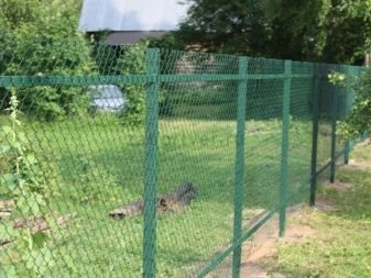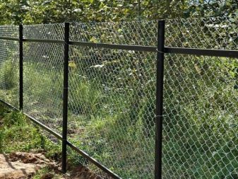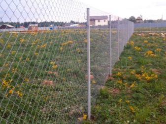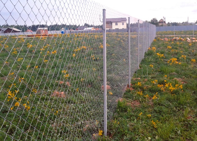Dans ce cas, il est préférable d'utiliser des poteaux métalliques bétonnés lorsqu'ils sont encastrés dans le sol.. Des fixations seront nécessaires, car le filet en grillage ne peut pas être fixé sur les vis.Vous pouvez également utiliser une chaîne s'il s'agit d'ériger non pas une barrière de protection, mais simplement une barrière de séparation.