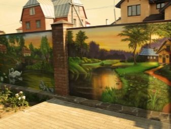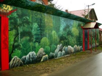 L'une des nouveautés est la possibilité d'imprimer des photos.. Il est effectué principalement sur des feuilles de carton ondulé. Le dessin est appliqué sur une grande surface de la toile, parfois sur la totalité de la toile, ce qui vous permet d’obtenir l’effet original d’être présent à un autre endroit. Par exemple, une maison peut être située dans une zone boisée et un paysage avec des palmiers et un bord de mer peut être appliqué à la clôture.