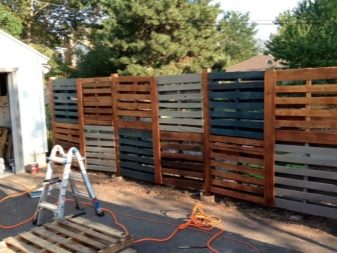 L'avantage des palettes est qu'elles peuvent être utilisées à la fois intactes et démontées. Une clôture constituée de parties de palettes est peut-être durable et belle, mais la version en une seule pièce n’y cédera pas. Cependant dans les deux cas, le bois nécessite un traitement supplémentaire, bien qu’il ait déjà été traité à l’usine.