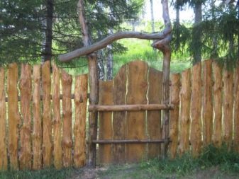 Un design inhabituel crée une forme de bois rare. Dans ce cas, les coupes rondes sont choisies et leur écorce est préservée. La clôture sert plutôt à des fins décoratives.