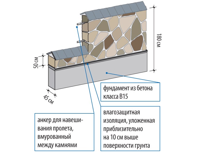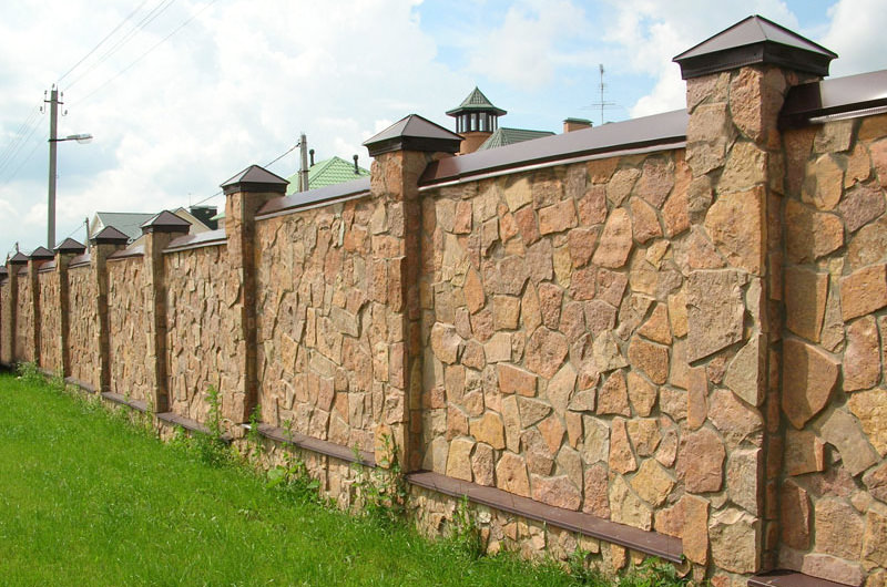 Vous pouvez souvent trouver des clôtures du type combiné, dans lesquelles une partie (ou une fondation, ou la clôture elle-même) est en pierre. La pierre est durable et fiable, elle convient donc à la fois aux fondations et à la maçonnerie.