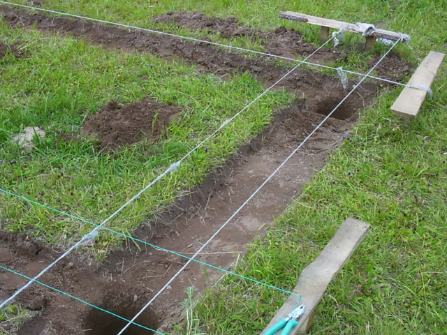 Avant de commencer à faire la clôture de vos propres mains, il est nécessaire de marquer la zone conformément à leurs dessins.. N'oubliez pas de vérifier s'il y a des communications souterraines. Par exemple, avant de percuter un pieu de fer dans le sol, vous devez vous assurer que les câbles haute tension ne sont pas posés juste en dessous. Si un tel test n'a pas été effectué et que le câble s'avère réellement être au même endroit, vous risquez non seulement de mettre hors tension tout le secteur, mais également de perdre la vie.