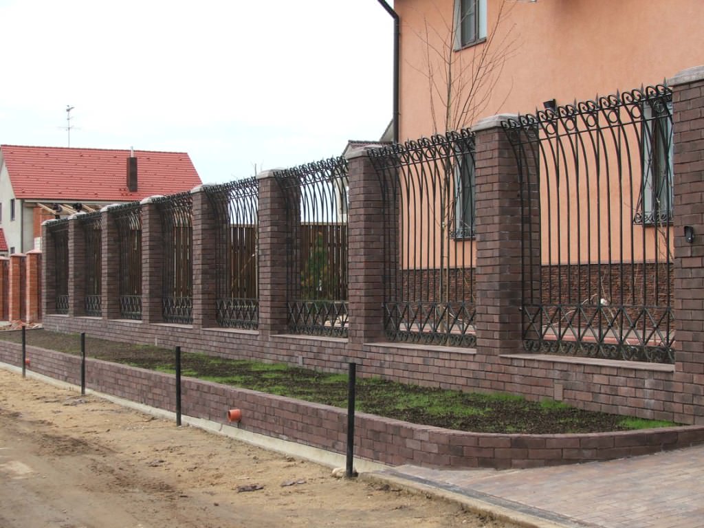 La construction d'une clôture en briques demandera du temps et des efforts, ainsi que l'expérience du travailleurmais le résultat dépassera toutes les attentes. Brick a une apparence solide et fiable, associée à presque tous les autres matériaux, y compris la pierre sauvage.