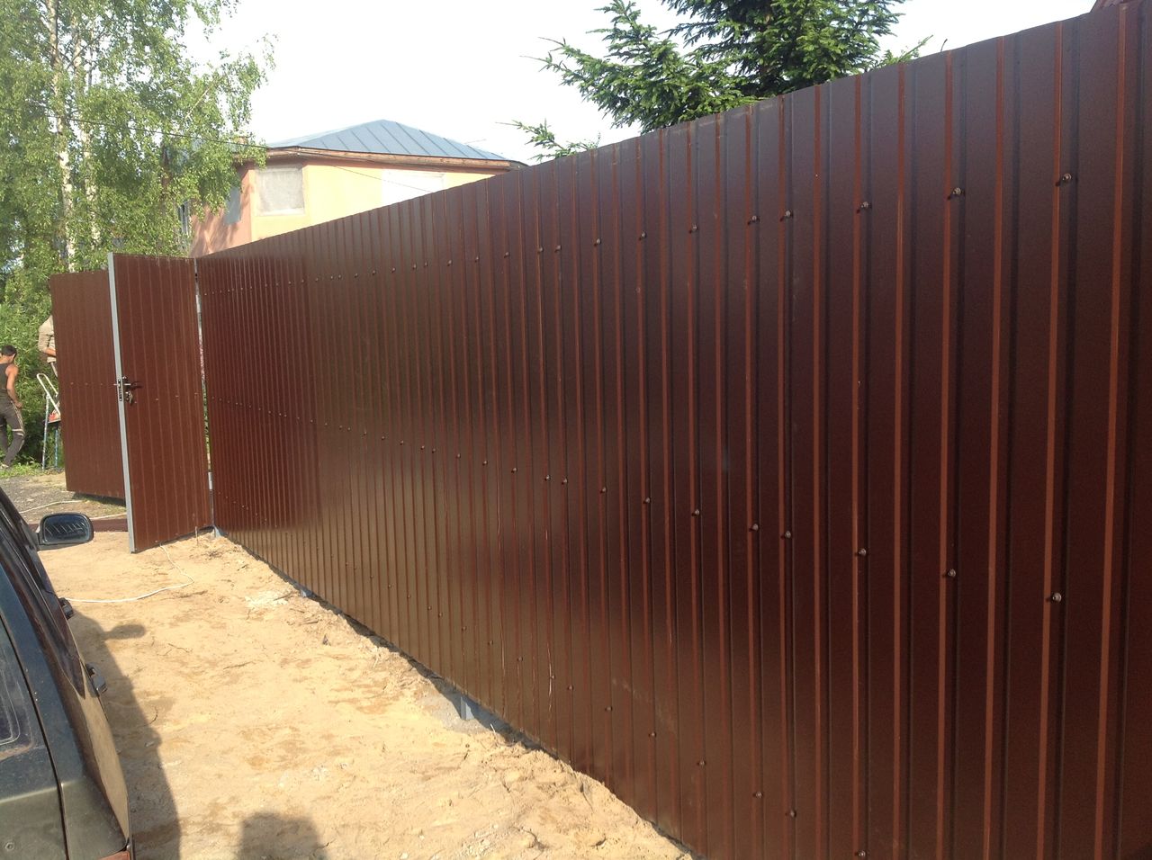 Il est assez facile de construire une clôture à partir d'une feuille professionnelle. Il suffit de calculer correctement la largeur de la marche entre les supports et de sélectionner des matériaux de haute qualité.