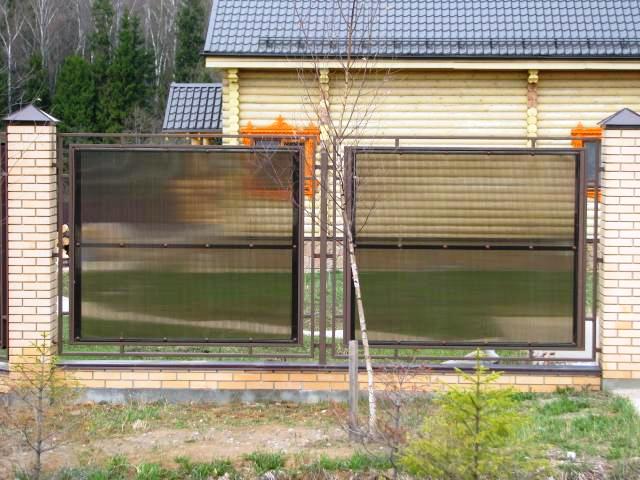 Pour construire une clôture en plastique, vous pouvez utiliser plusieurs options pour les matières premières. Dans le premier cas, des couches entières de polycarbonate sont utilisées. Ce matériau se distingue de tous les autres, en grande partie par son apparence. Les panneaux sont translucides, transmettent bien la lumière, tout en déformant l'espace. Ainsi, une excellente transmission de la lumière est assurée et le site est protégé contre les vues indésirables. Les plaques sont monolithiques ou cellulaires. Le choix en faveur d’une variété particulière dépend principalement du budget disponible.