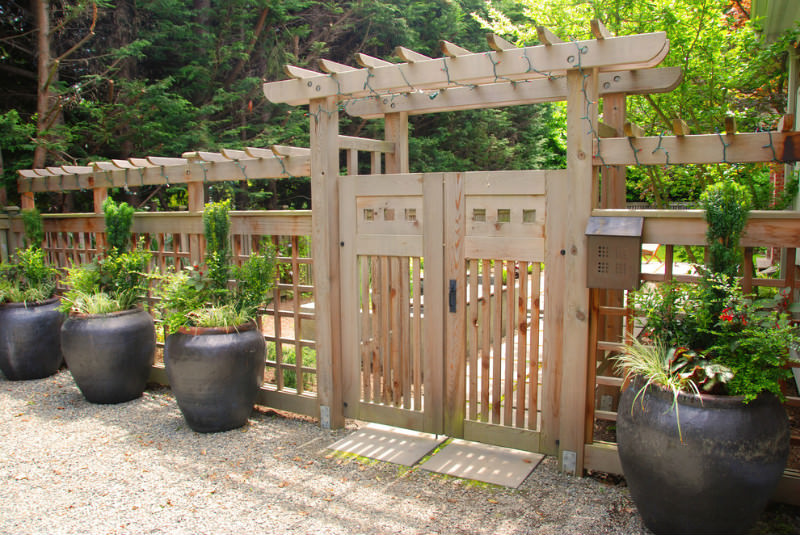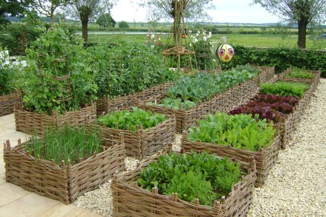 Une version en osier est à la fois traditionnelle et inhabituelle. Il semble solide et fiable, il ne rend pas le paysage plus lourd visuellement.