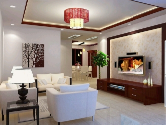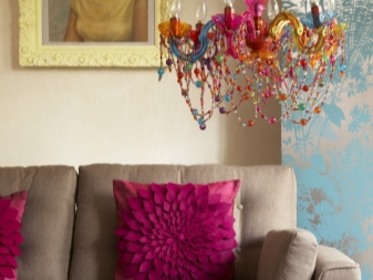 - Les décorations suspendues et autres éléments de grande taille, y compris les plafonds larges, ne seront pas à leur place dans les petites pièces, ce qui les entasser et les réduire visuellement