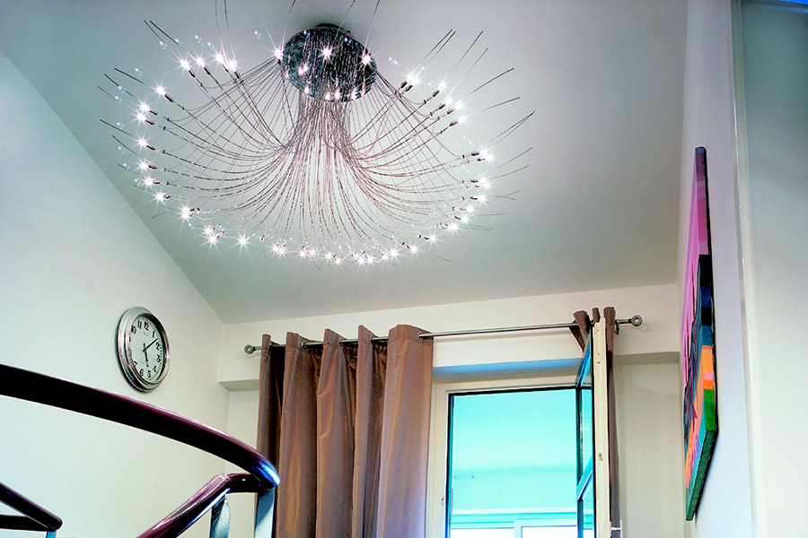 - Considérez la puissance des ampoules utilisées, comme les lustres au plafond sont situés près du plafond et que les nappes de tension peuvent fondre.